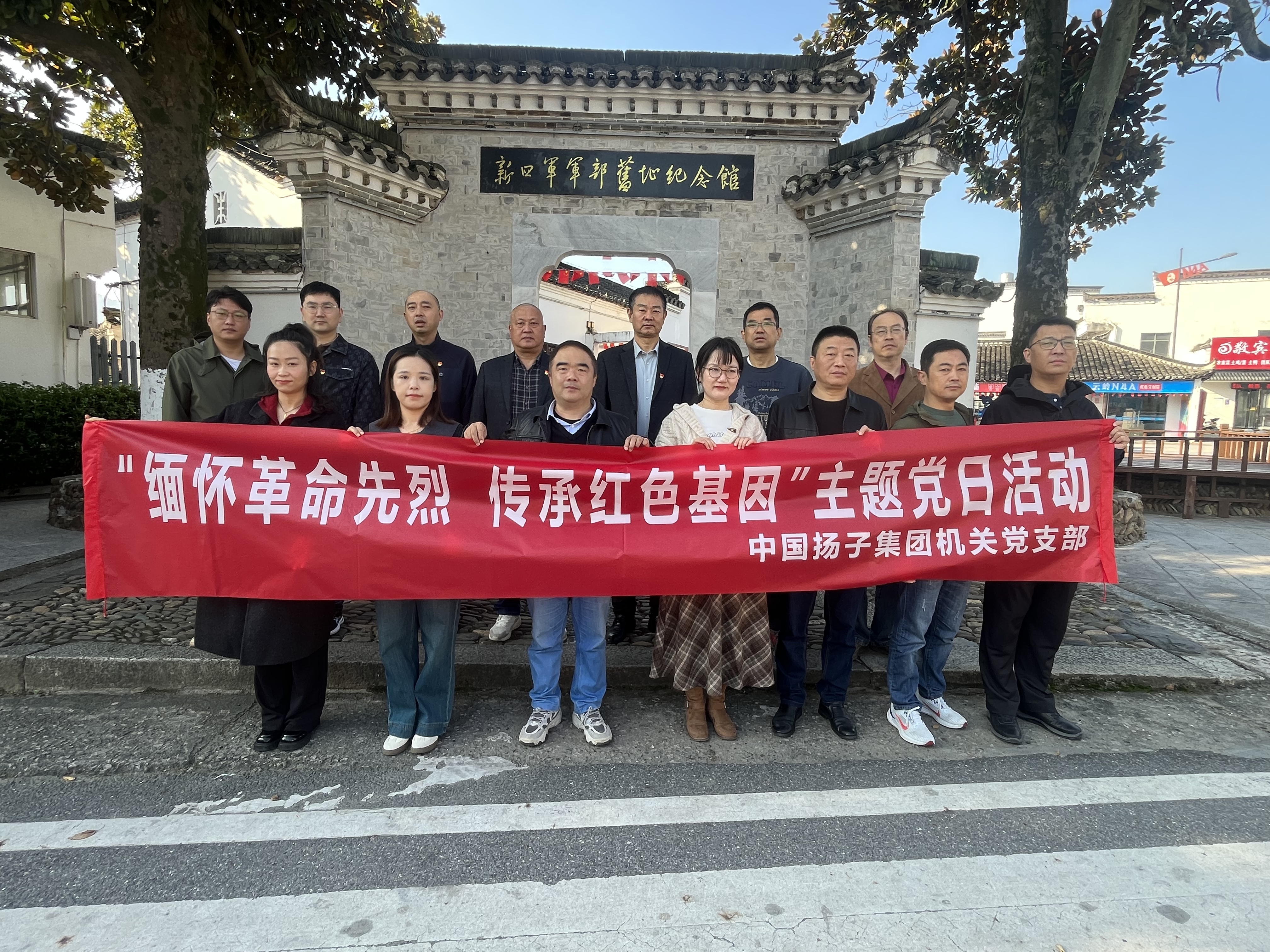 揚子集團機關黨支部赴涇縣新四軍軍部舊址開展“緬懷革命先烈,傳承紅色基因”主題黨日活動為深入學習貫徹習近平新時代中國特色社會主義思想,進一步筑牢黨員理想信念根基,10月25日,揚子集團機關黨支部組織全體黨員及入黨積極分子前往宣城市涇縣新四軍軍部舊址紀念館,開展"緬懷革命先烈,傳承紅色基因"主題黨日
